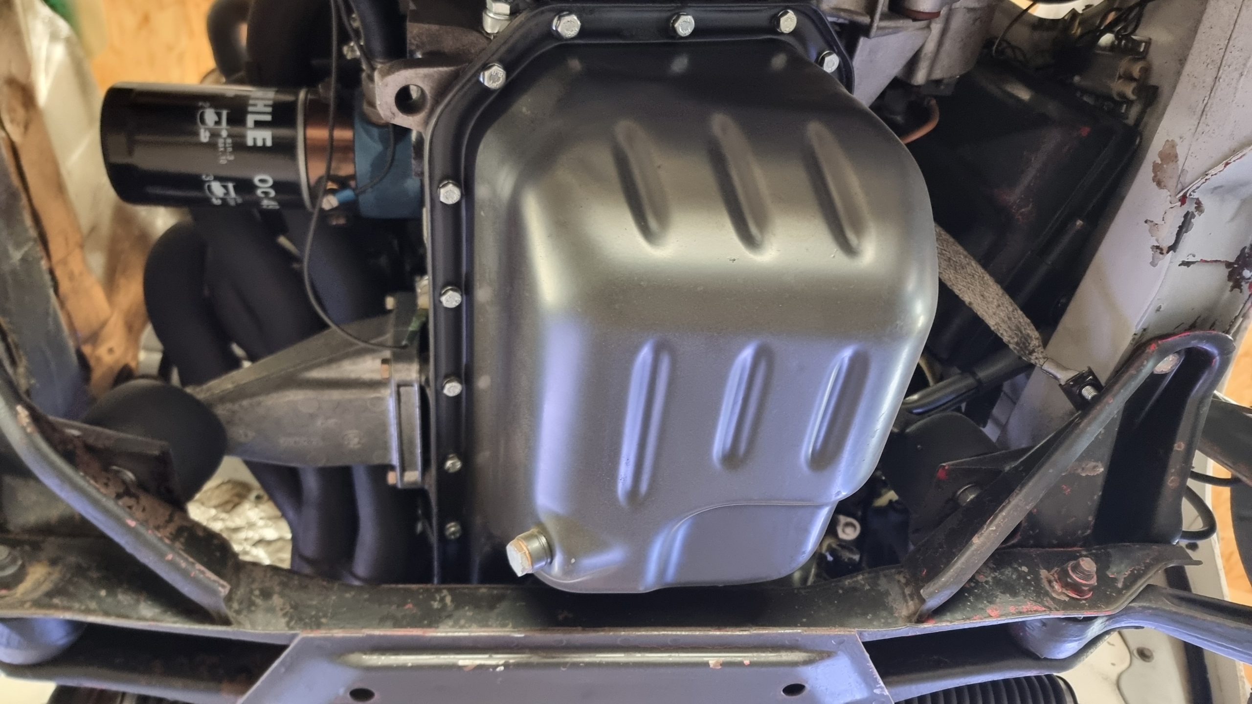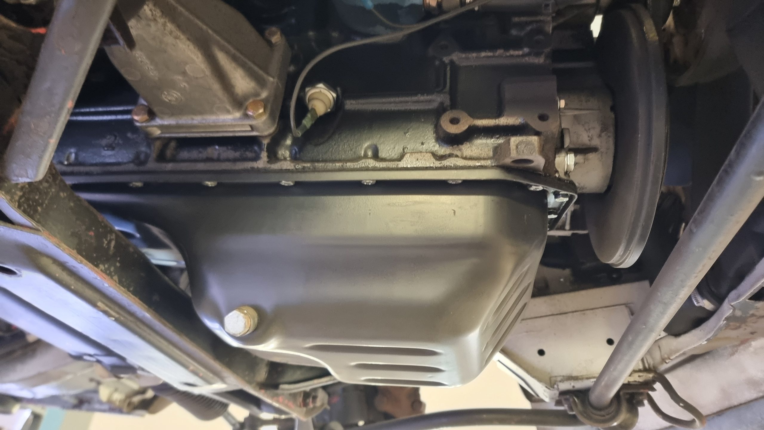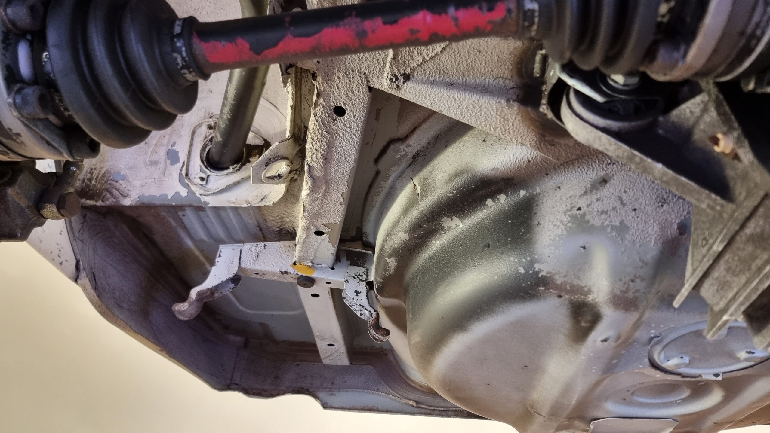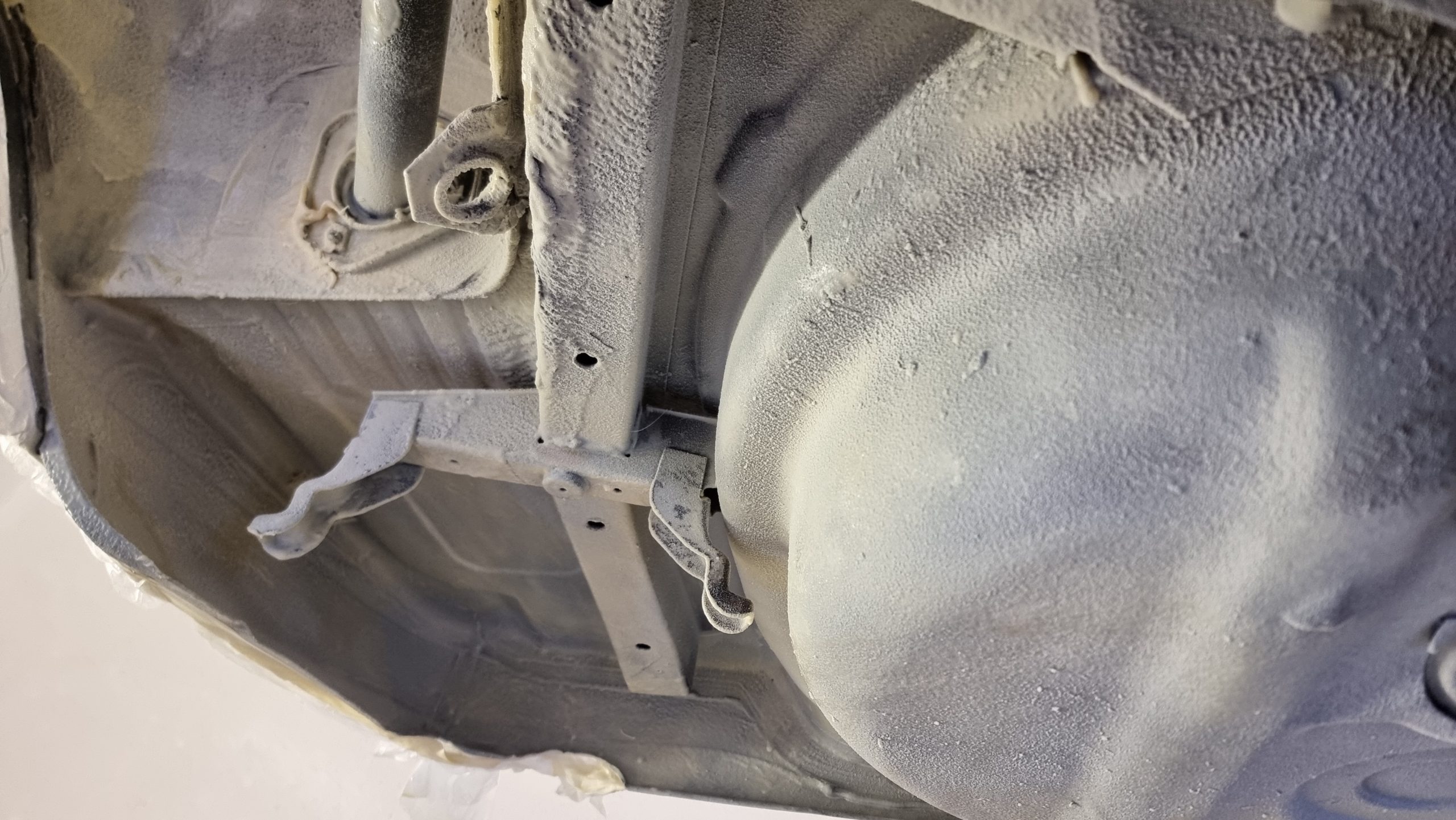 Mit unserem Trockeneisstrahlverfahren haben wir sämtliche Verschmutzungen, Unterbodenschutzreste, Ölspuren und Flugrost schonend entfernt – ganz ohne Wasser, Chemikalien oder Abrieb der Originalsubstanz. Im Anschluss wurde der frisch gereinigte Unterboden fachgerecht mit Mike Sanders Korrosionsschutzfett versiegelt – einem bewährten Mittel, das sich besonders für Klassiker eignet.