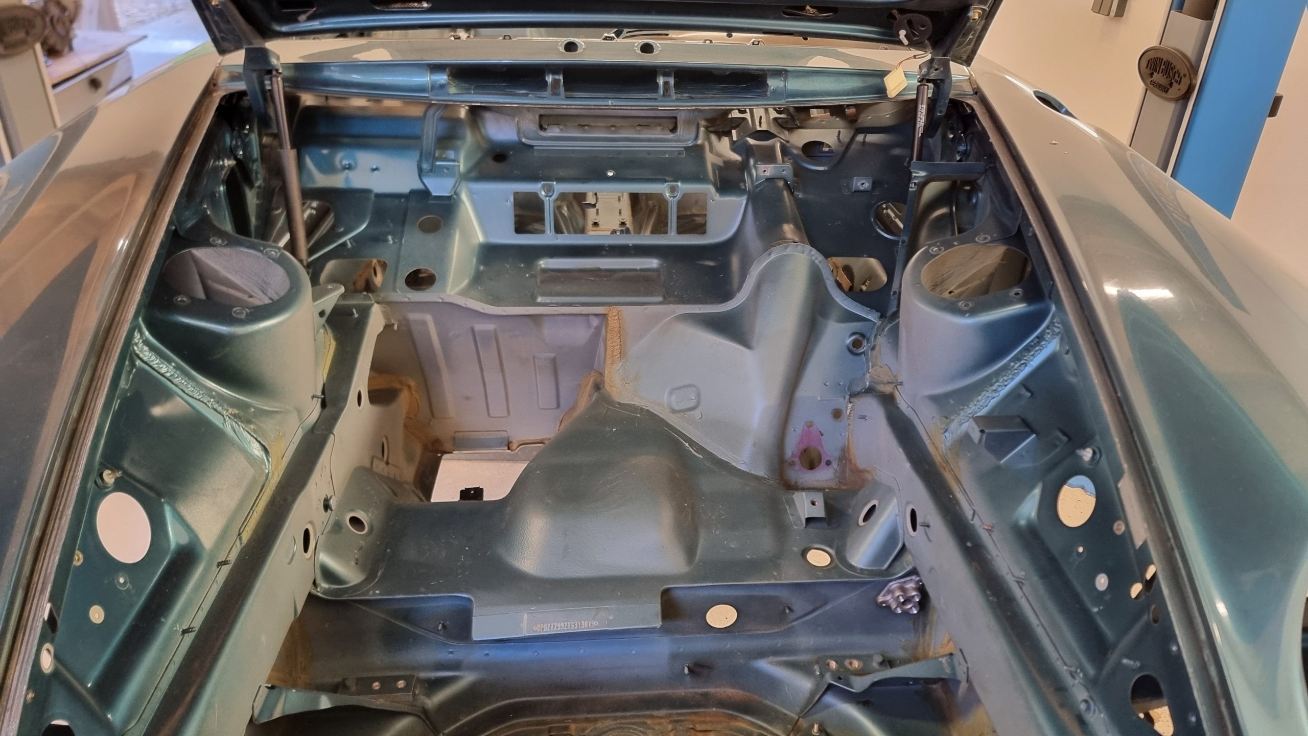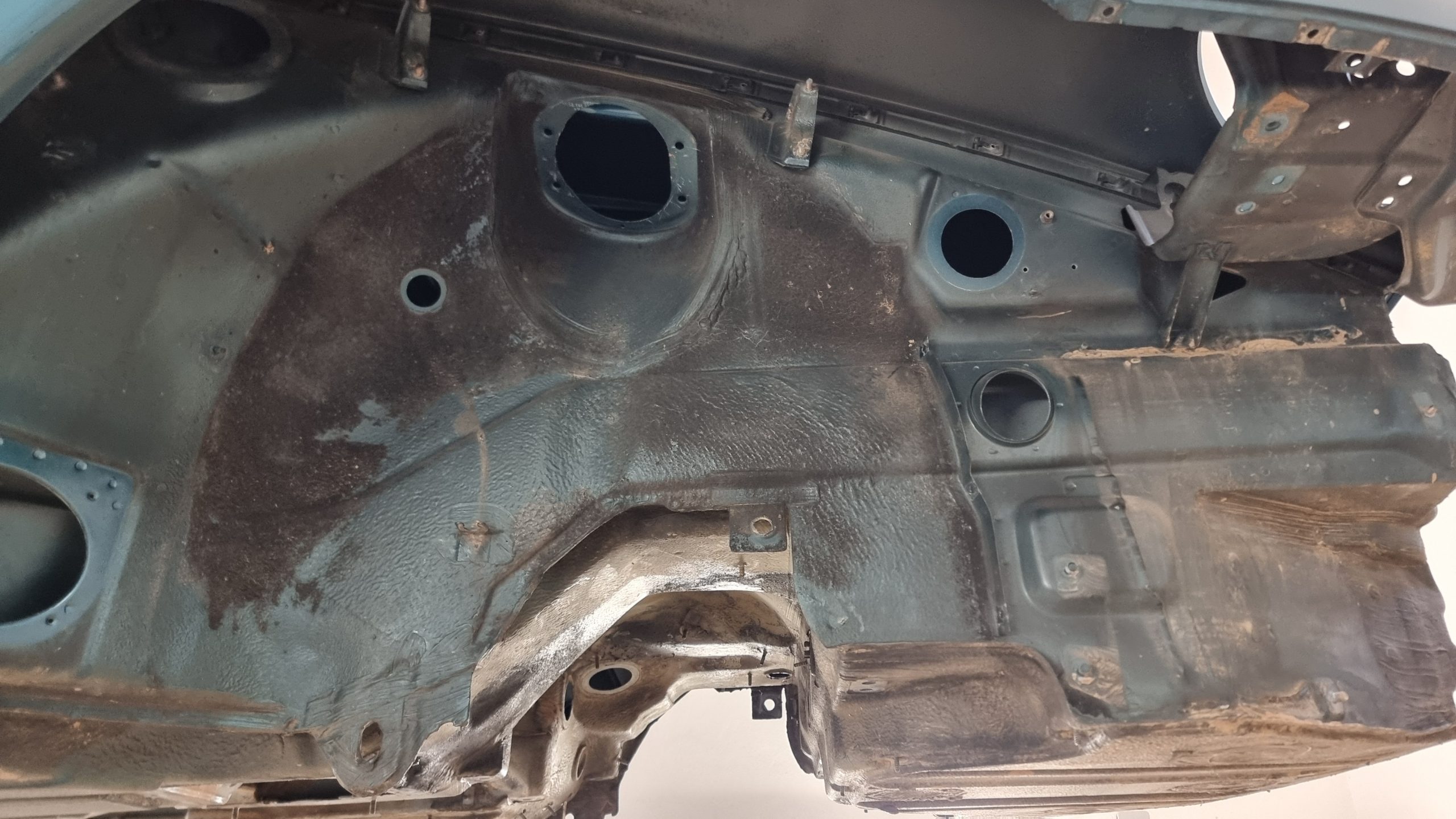 Die Basis jeder Restaurierung: eine gründliche und schonende Reinigung. Mit unserem Trockeneisstrahlverfahren haben wir das Fahrzeug von innen und außen vom Schmutz, Schlamm und Korrosionsansätzen befreit – besonders im Motorraum, an Fahrwerksteilen und in Hohlräumen. Ohne Wasser, ohne Chemie, ohne Rückstände. So wurde der Porsche professionell vorbereitet – als erster Schritt zurück auf die Straße. Ein Beispiel dafür, dass sich Sorgfalt und moderne Technik lohnen.