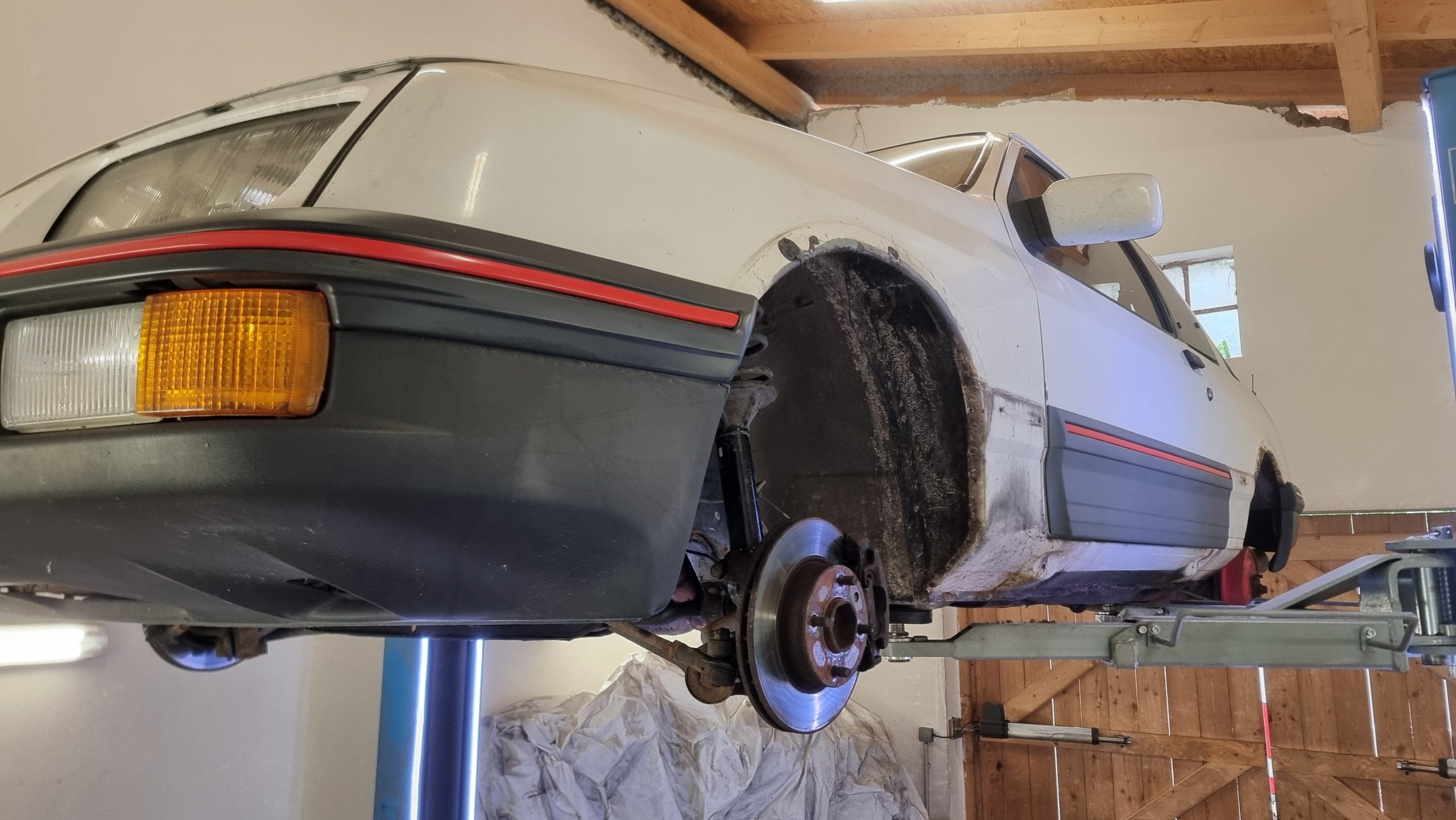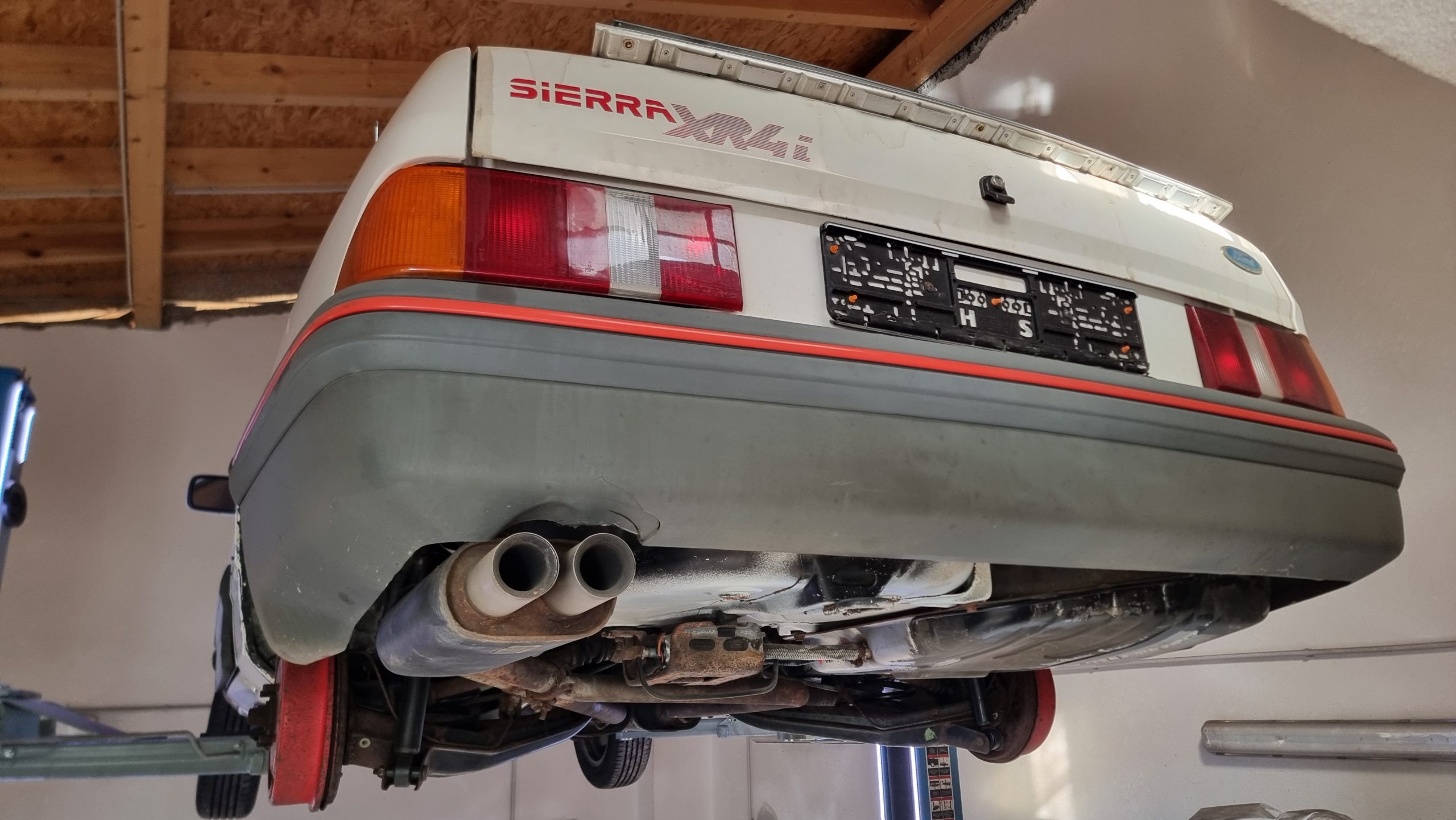 Bei diesem selten gewordenen Ford Sierra XR4i stand der Werterhalt im Fokus. Der Klassiker sollte für die weitere Restauration gründlich gereinigt werden – besonders im Bereich des Unterbodens und der Radhäuser, wo sich über die Jahre Schmutz, Bitumenreste und leichte Korrosion angesammelt hatten.