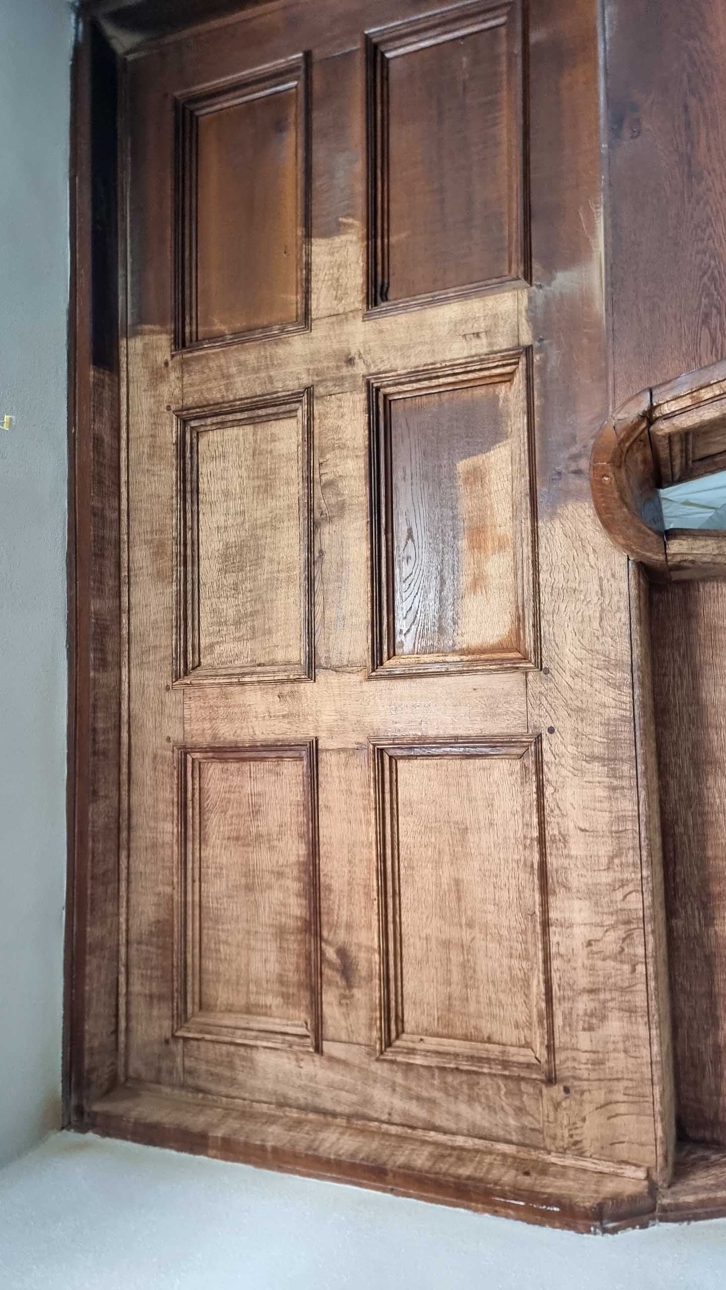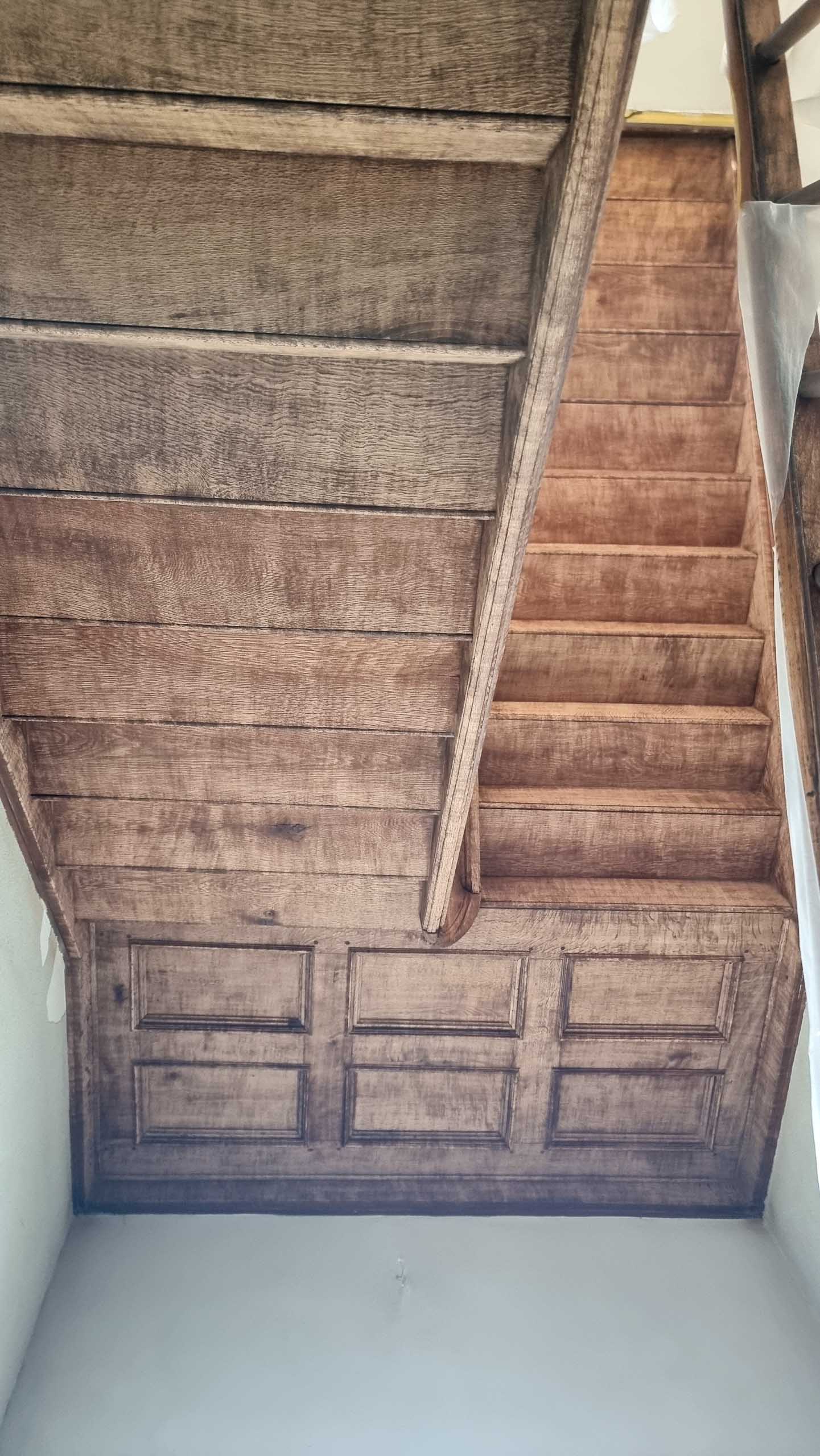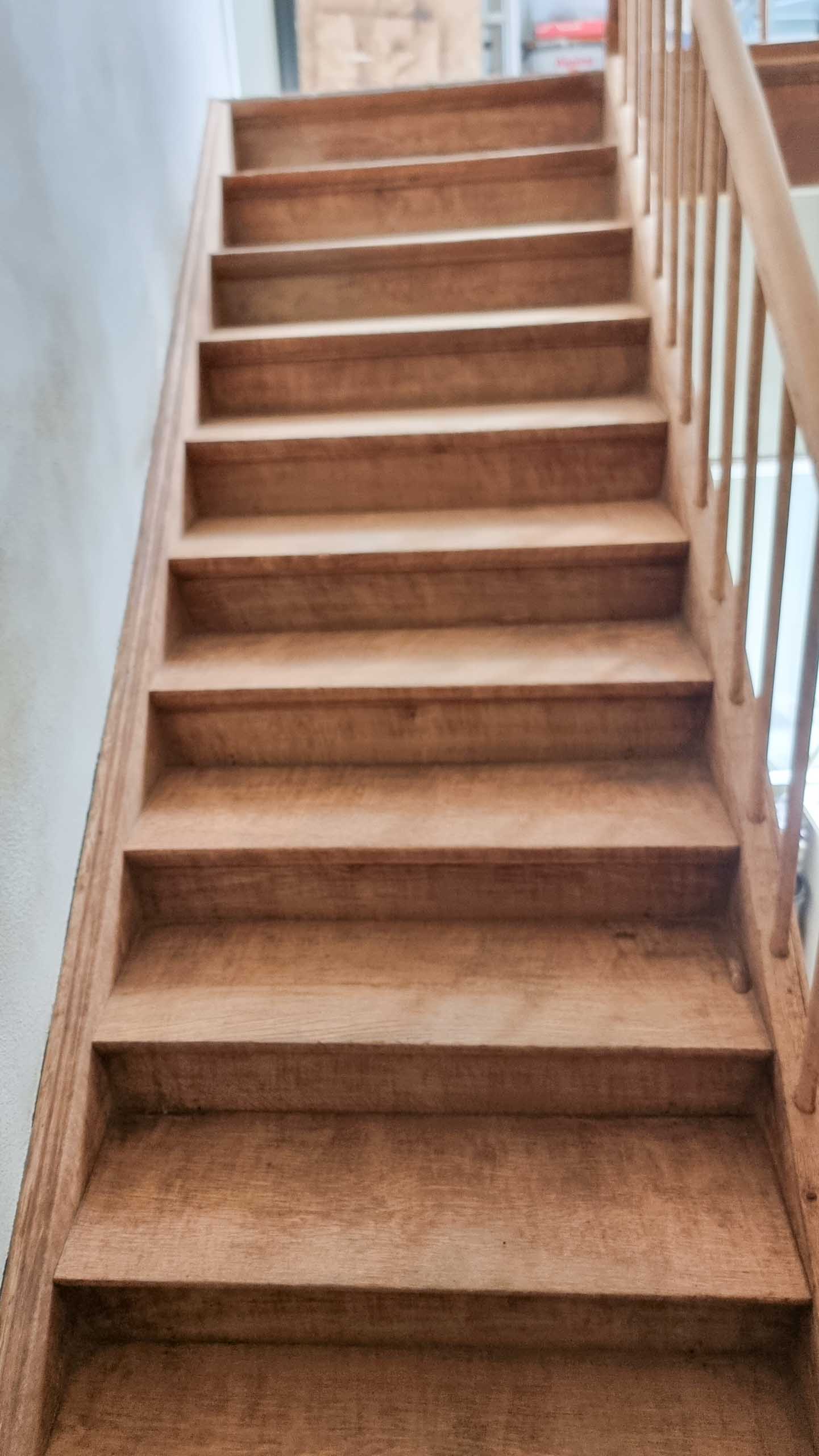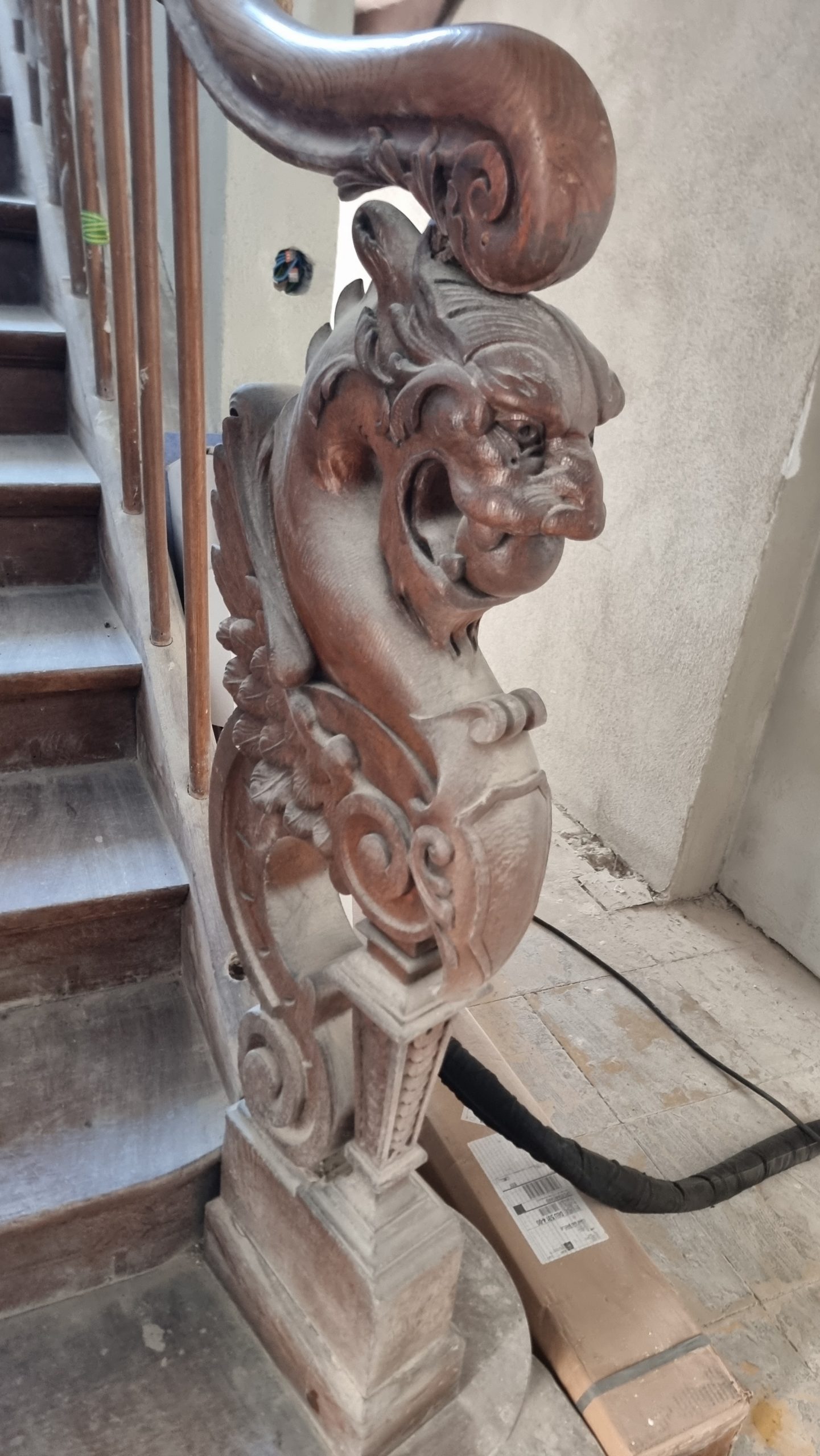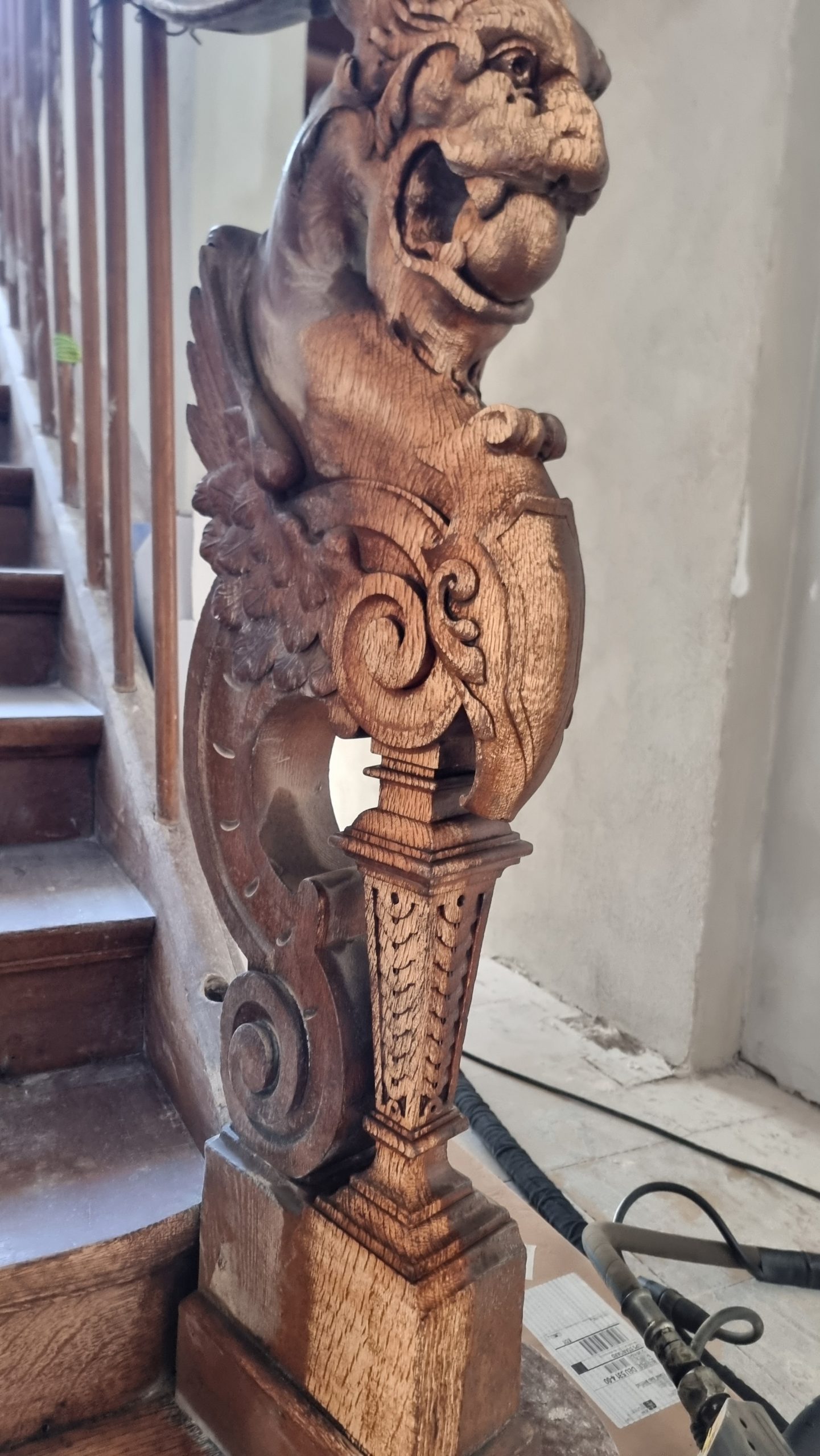 Diese historische Holztreppe war über Jahrzehnte von Schmutz, Lackschichten und dunklen Verfärbungen überzogen – die feinen Details der Holzarbeit kaum noch sichtbar. Ziel war es, die ursprüngliche Struktur freizulegen, ohne das alte Holz zu beschädigen.