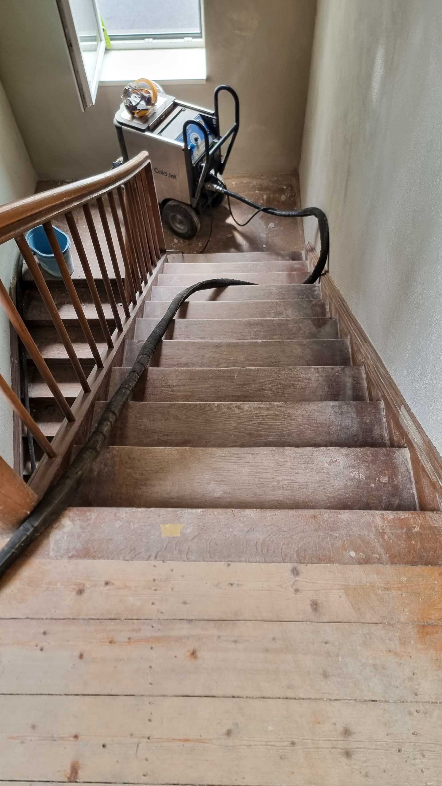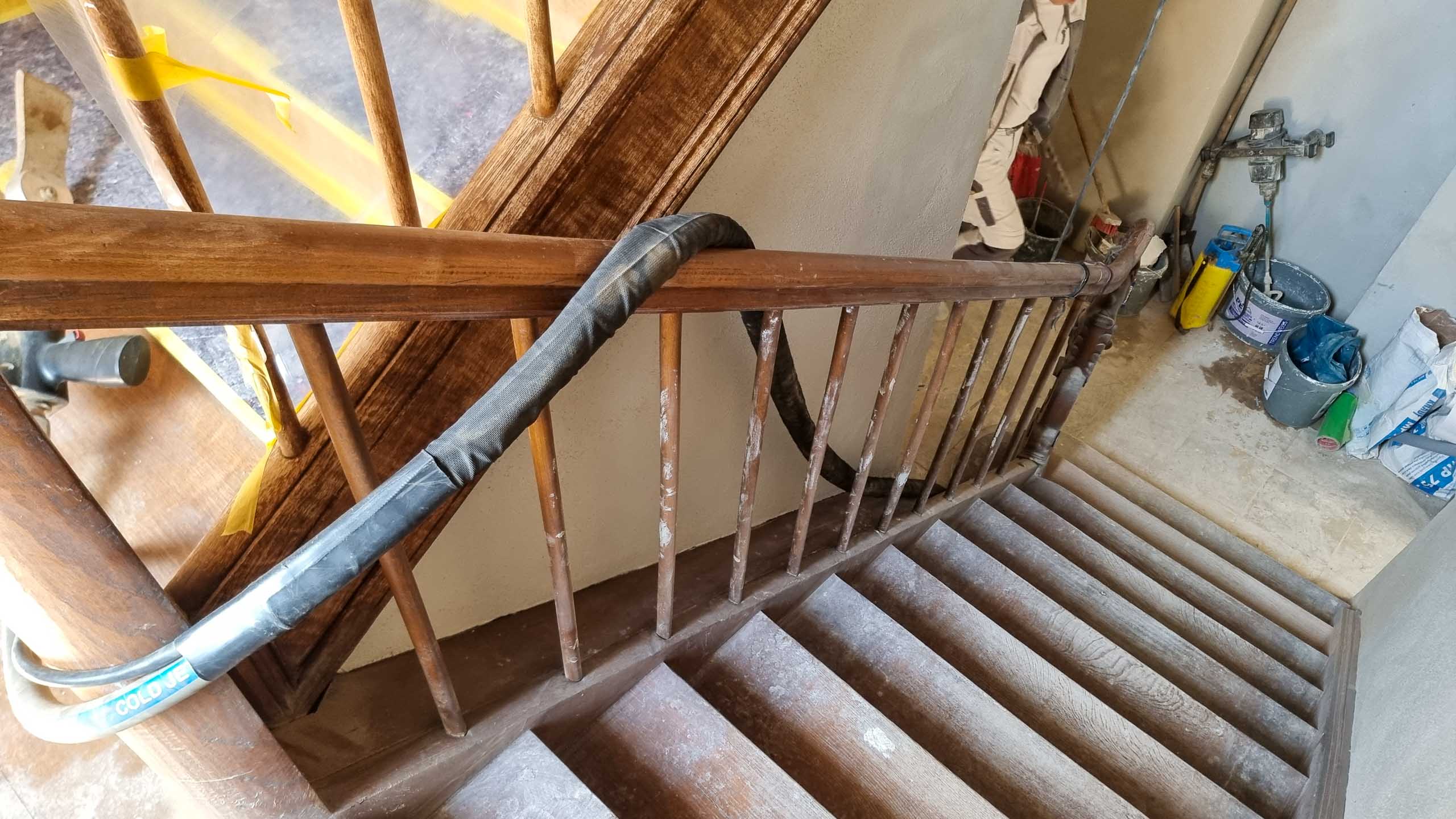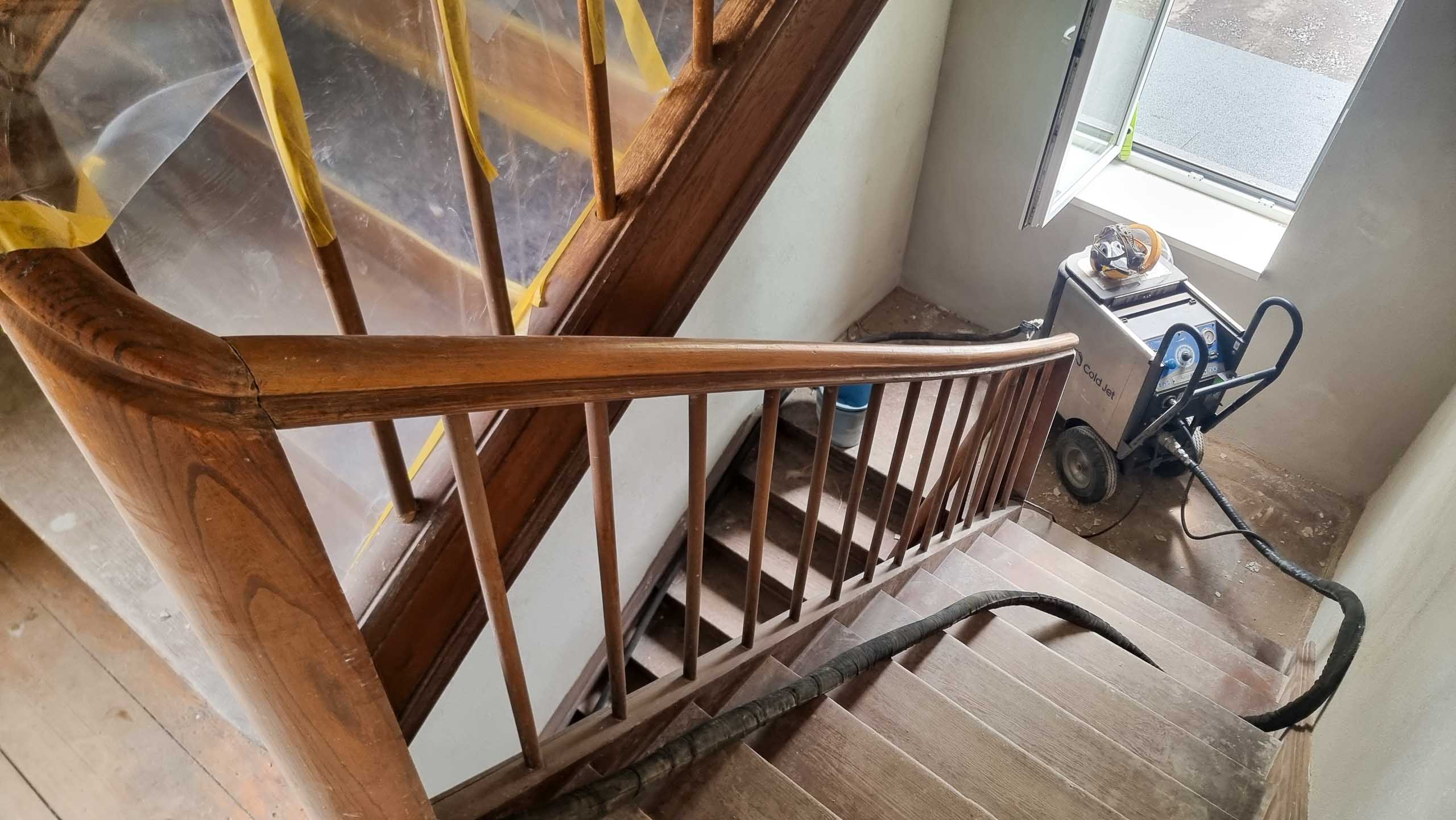 Historische Holztreppe – Sanfte Reinigung mit Trockeneis