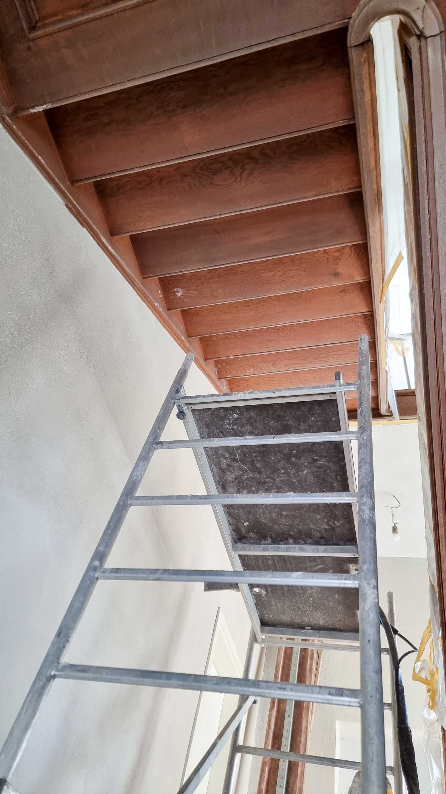 Mit unserem Trockeneisstrahlverfahren konnten wir die Treppe schonend und gründlich reinigen – ganz ohne Schleifen, Chemie oder Feuchtigkeit. Selbst in Ecken, Ritzen und an filigranen Profilen lösten sich Farbreste und Schmutz rückstandsfrei. Das Ergebnis: Die Treppe erstrahlt wieder in ihrer natürlichen Holzfarbe und ist bereit für eine behutsame Weiterbehandlung im Rahmen der denkmalgerechten Sanierung. Ein gelungenes Beispiel für die Kombination aus moderner Technik und Respekt vor historischer Substanz.