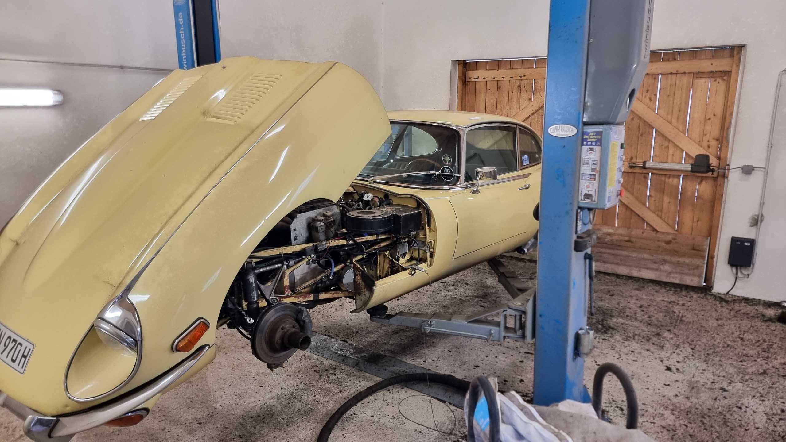 Was für ein Auto! Dieser Jaguar E-Type 4.2 ist nicht nur ein Klassiker, sondern ein echtes Schmuckstück britischer Automobilgeschichte. Um ihn behutsam auf die bevorstehende Restauration vorzubereiten, wurde der Wagen mit unserem Trockeneisstrahlverfahren gründlich gereinigt.