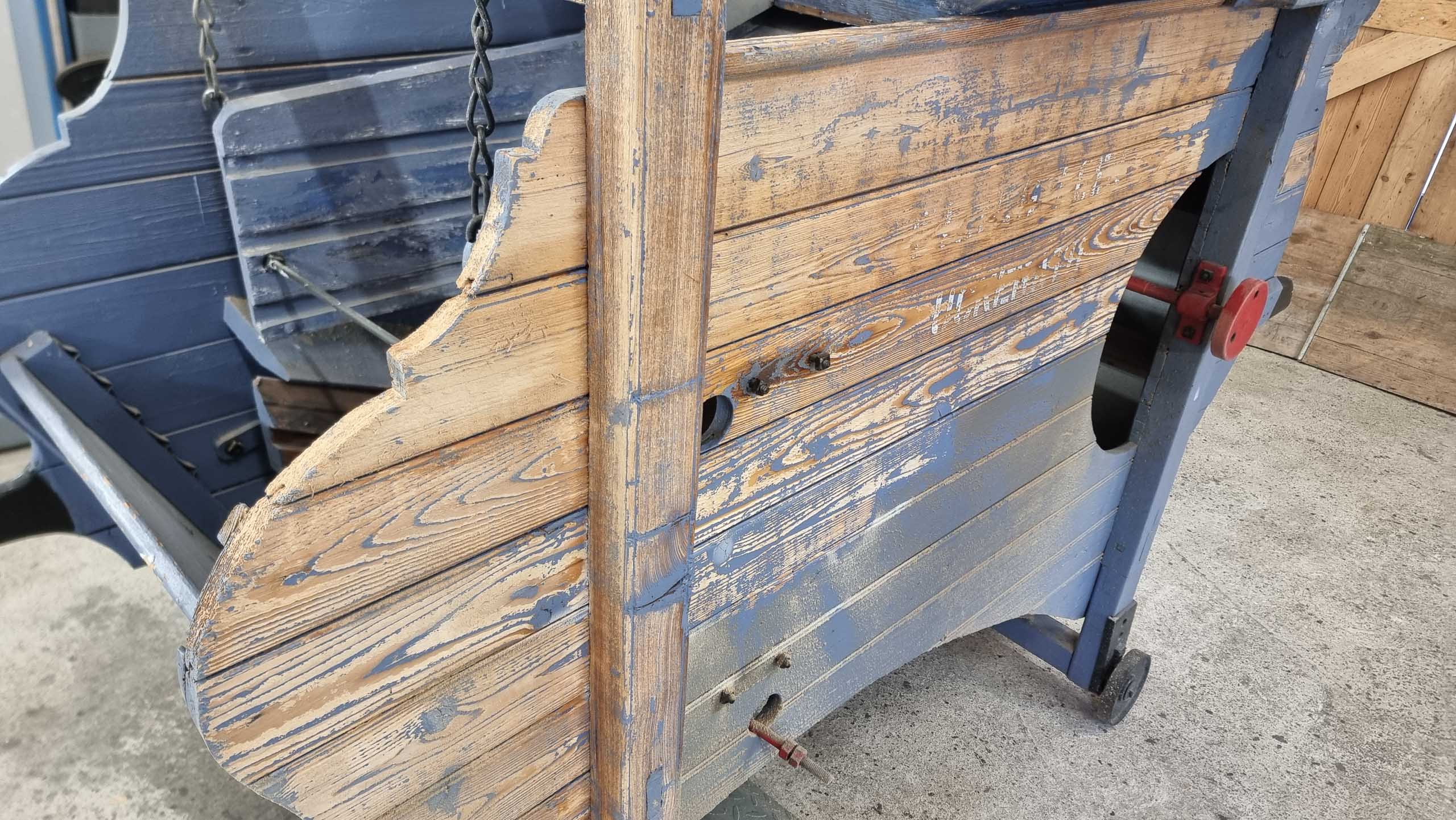 Durch die schonende Reinigung entstand eine gleichmäßige, saubere Oberfläche mit fest haftendem Restlack – eine ideale Grundlage für den erneuten Lackaufbau. Die Holzsubstanz und die Form der Mühle blieben dabei vollständig erhalten.