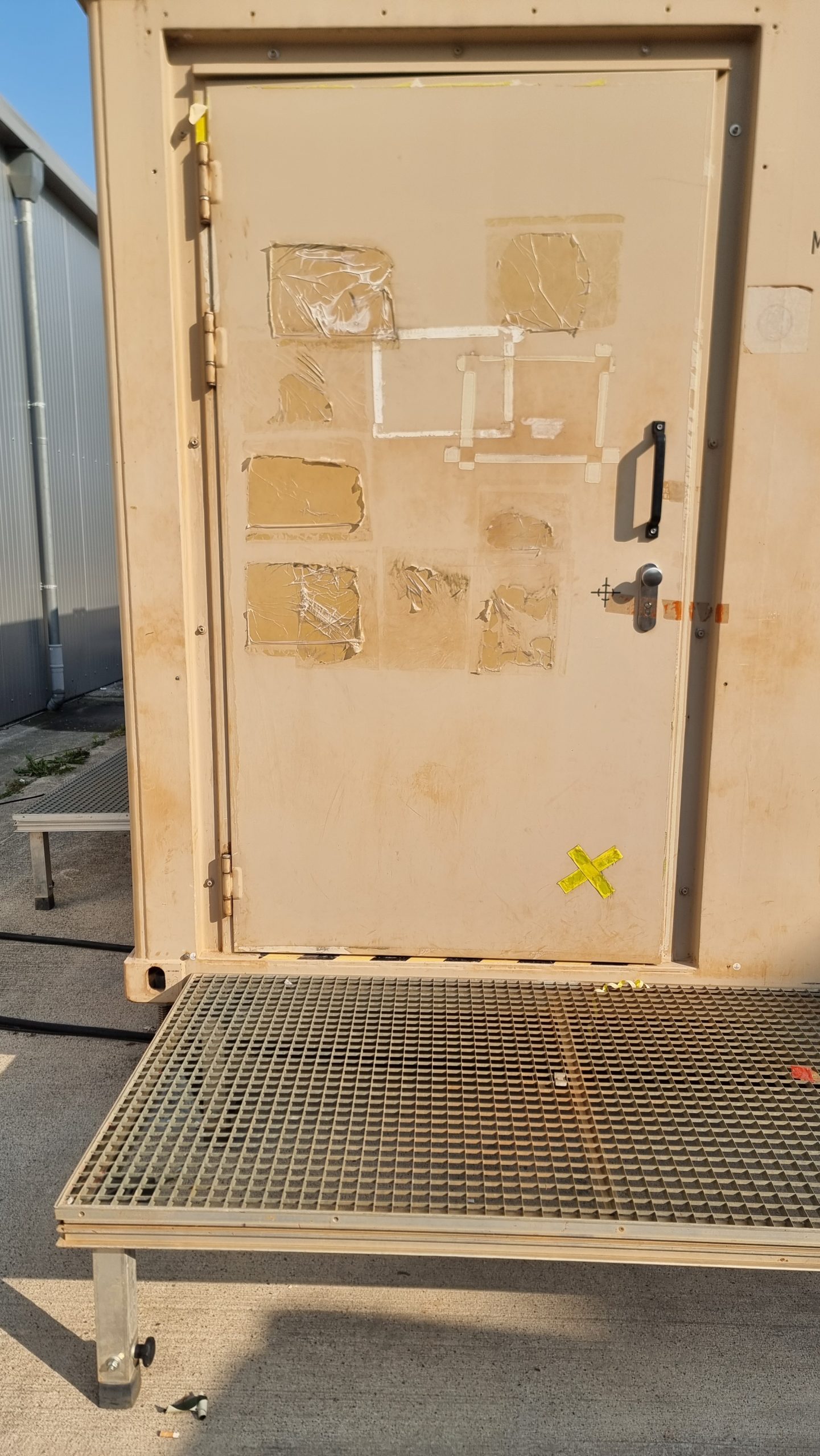 Wenn Container der Bundeswehr aus dem Einsatz zurückkehren, sind sie oft stark verschmutzt – von Schlamm, Staub, Ölresten bis hin zu hartnäckigen Gebrauchsspuren. Besonders häufig haften Aufkleberreste, Kleberückstände oder feiner Wüstensand an den Oberflächen – innen wie außen. Genau hier kommt unser Trockeneisstrahlverfahren zum Einsatz: schnell, effizient und rückstandsfrei.