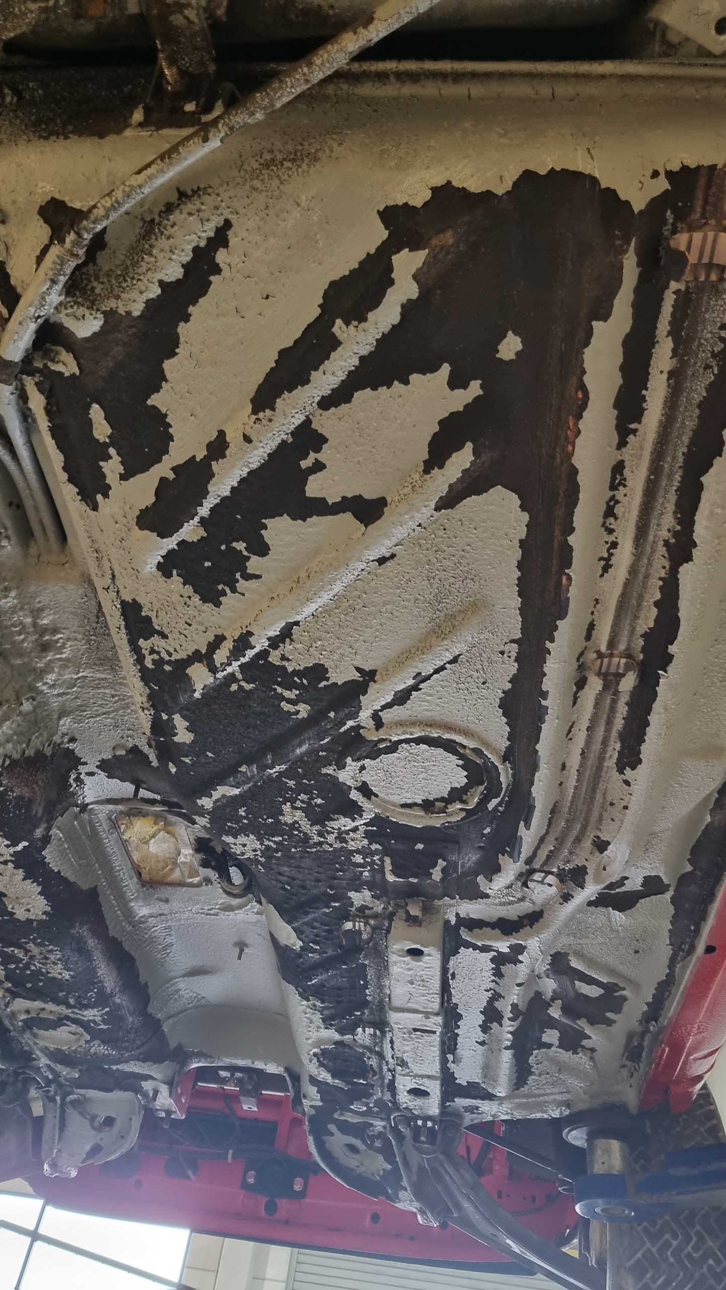 Um dem Golf I GTI neues Leben einzuhauchen, musste zunächst die Basis stimmen. Vor dem Neuaufbau wurde das Fahrzeug umfassend mit dem Trockeneisstrahlverfahren gereinigt. Ziel war es, alte Verschmutzungen, Unterbodenschutz, Fett- und Schmutzablagerungen sowie Rückstände früherer Arbeiten zu entfernen.