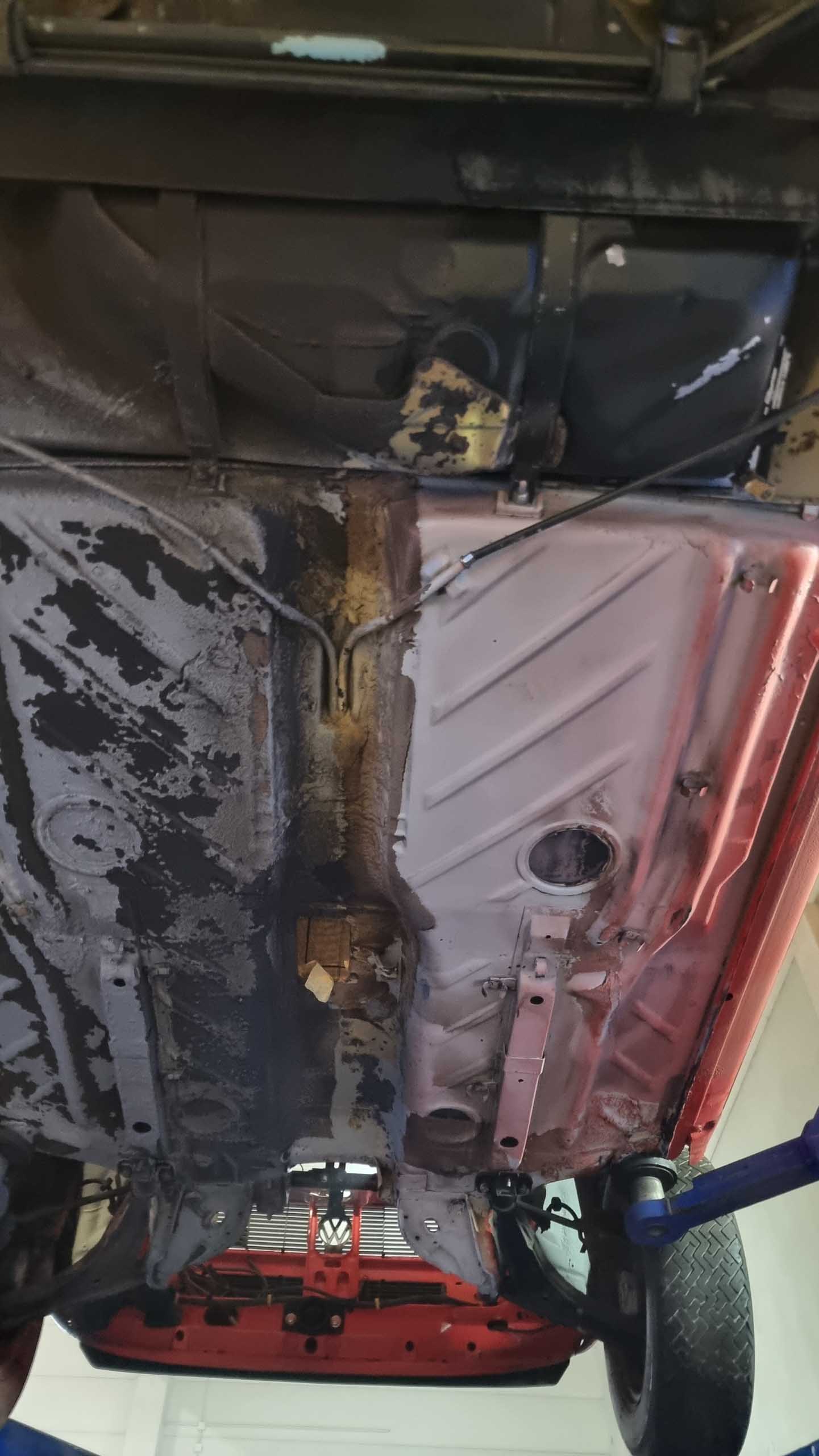 Nach der Reinigung liegt der Golf I offen und ehrlich vor einem: sauber, übersichtlich und bereit für den nächsten Schritt der Restaurierung. Die perfekte Grundlage für einen fachgerechten Neuaufbau – und für viele weitere Jahre Fahrspaß.