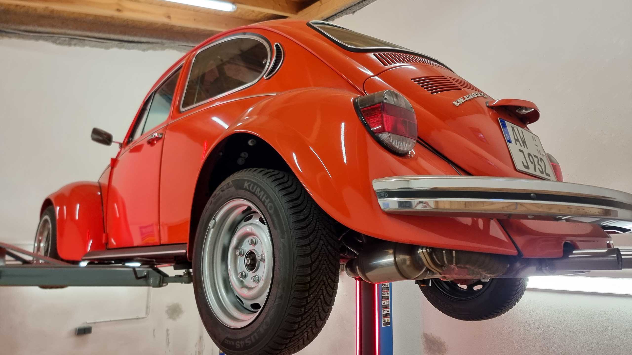 Dieser VW Käfer – eine echte Ikone auf vier Rädern – wurde von uns mit Trockeneis gründlich gereinigt. Der Fokus lag auf dem Unterboden und den Radkästen, wo sich im Laufe der Jahrzehnte Schmutz, Fett, Bitumenreste und Rostansätze abgelagert hatten.