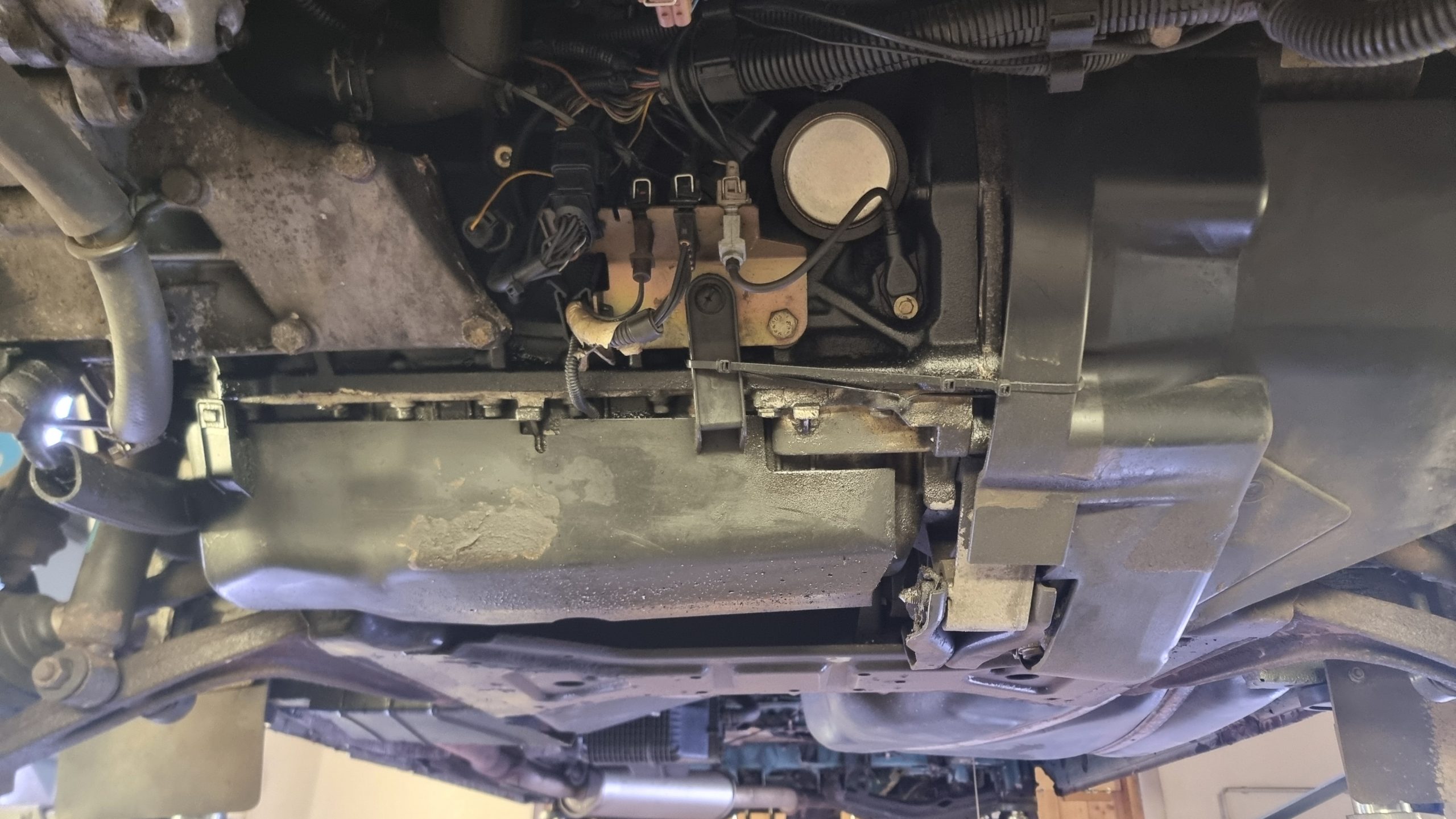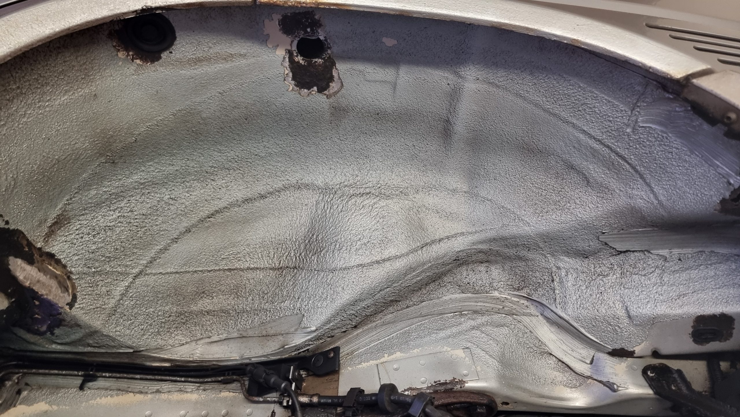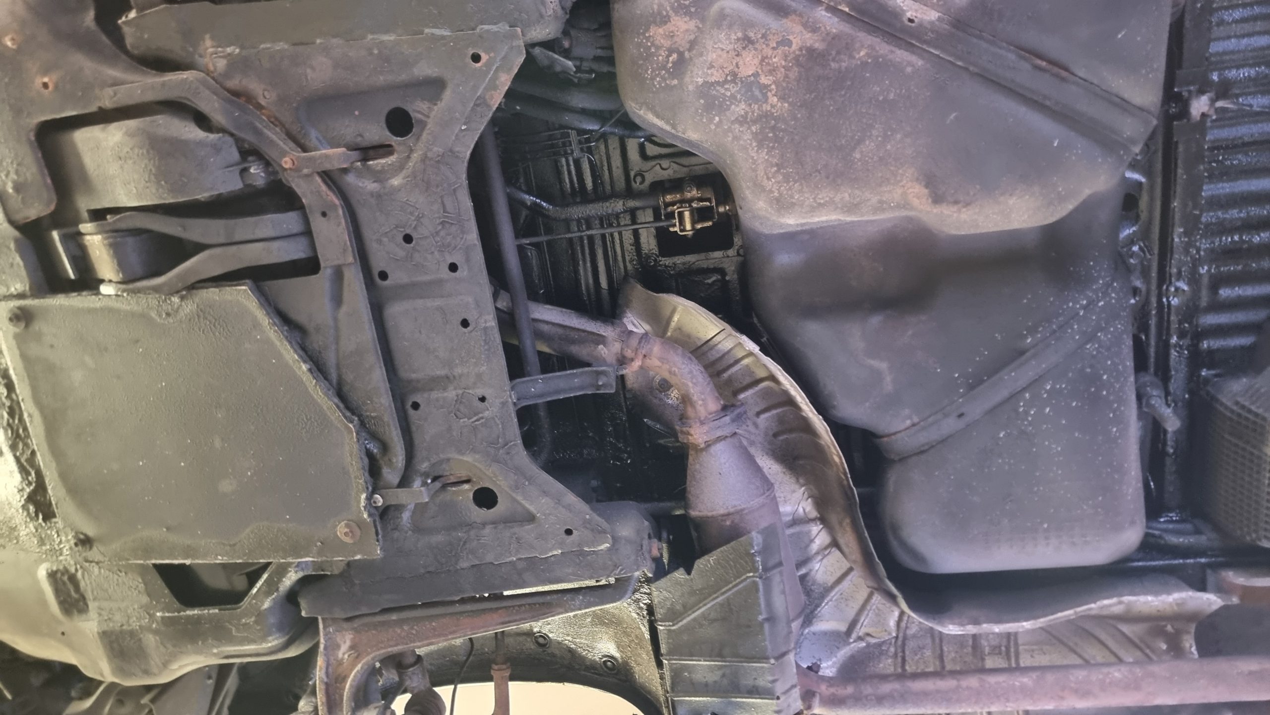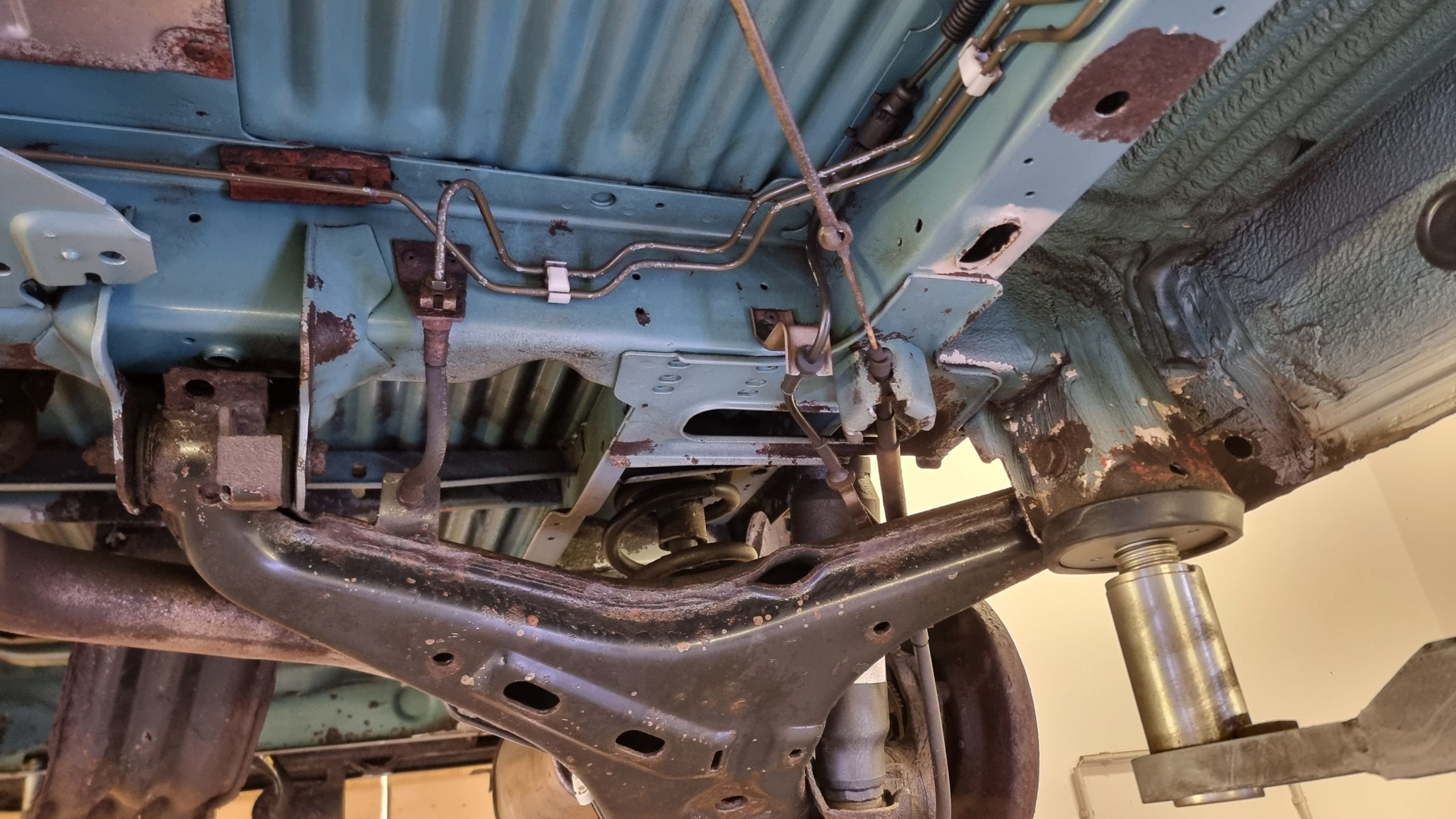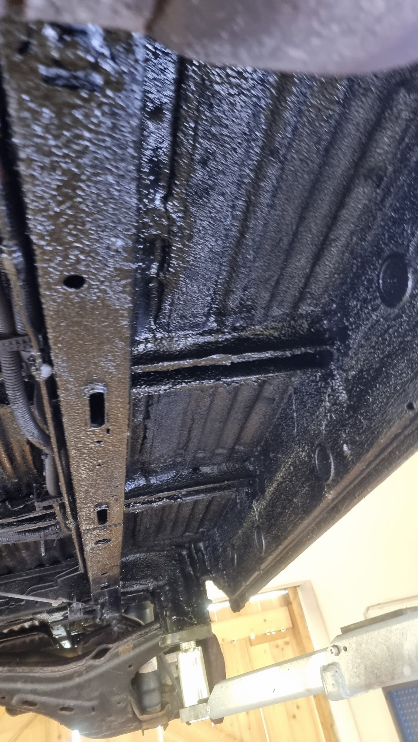 Dieser VW T4 hatte über die Jahre einiges mitgemacht – Schmutz, Bitumenreste, Rostansätze und alte Schutzschichten hatten sich am Unterboden abgelagert. Für die geplante Konservierung war eine gründliche und zugleich schonende Reinigung notwendig.